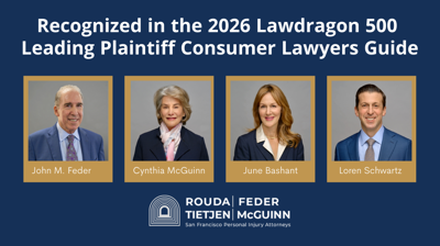 If you have been injured by the negligence of another person, company, or product, you deserve a skilled and committed attorney at your side to obtain maximum compensation for your losses. After more than 46 years, Rouda Feder Tietjen & McGuinn has represented seriously injured individuals and their families, earning a reputation as formidable trial lawyers and effective negotiators who deliver exceptional results. Our work not only helps our clients rebuild their lives but also strengthens the safety and accountability of our communities. You can put your trust in Rouda Feder Tietjen & McGuinn.